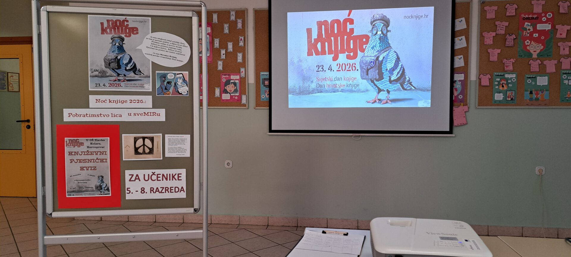 Prvi dio Noći knjige u našoj školi obilježili smo danas s učenicima 5. – 8. razreda Književnim pjesničkim kvizom. Učenici su, izvlačenjem papirića, formirali 6 ekipa po 5 članova od 5. – 8. razreda i zajedničkim snagama prepoznavali i nadopunjavali stihove i naslove pjesama te dijelove životopisa naših poznatih pjesnika.